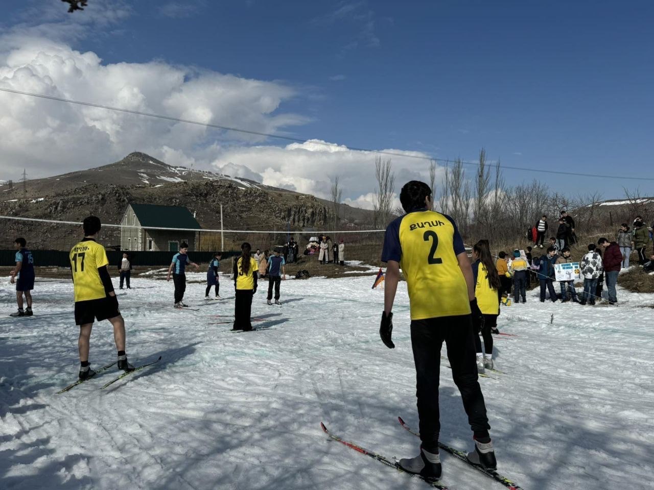 In the Qaghsi community, the local physical education teacher, who was a professional skier, came up with the idea of delivering a volleyball match on skis. This idea was very interesting and the local school children who train on skis eventually played ‘ski volleyball’ on February 29.