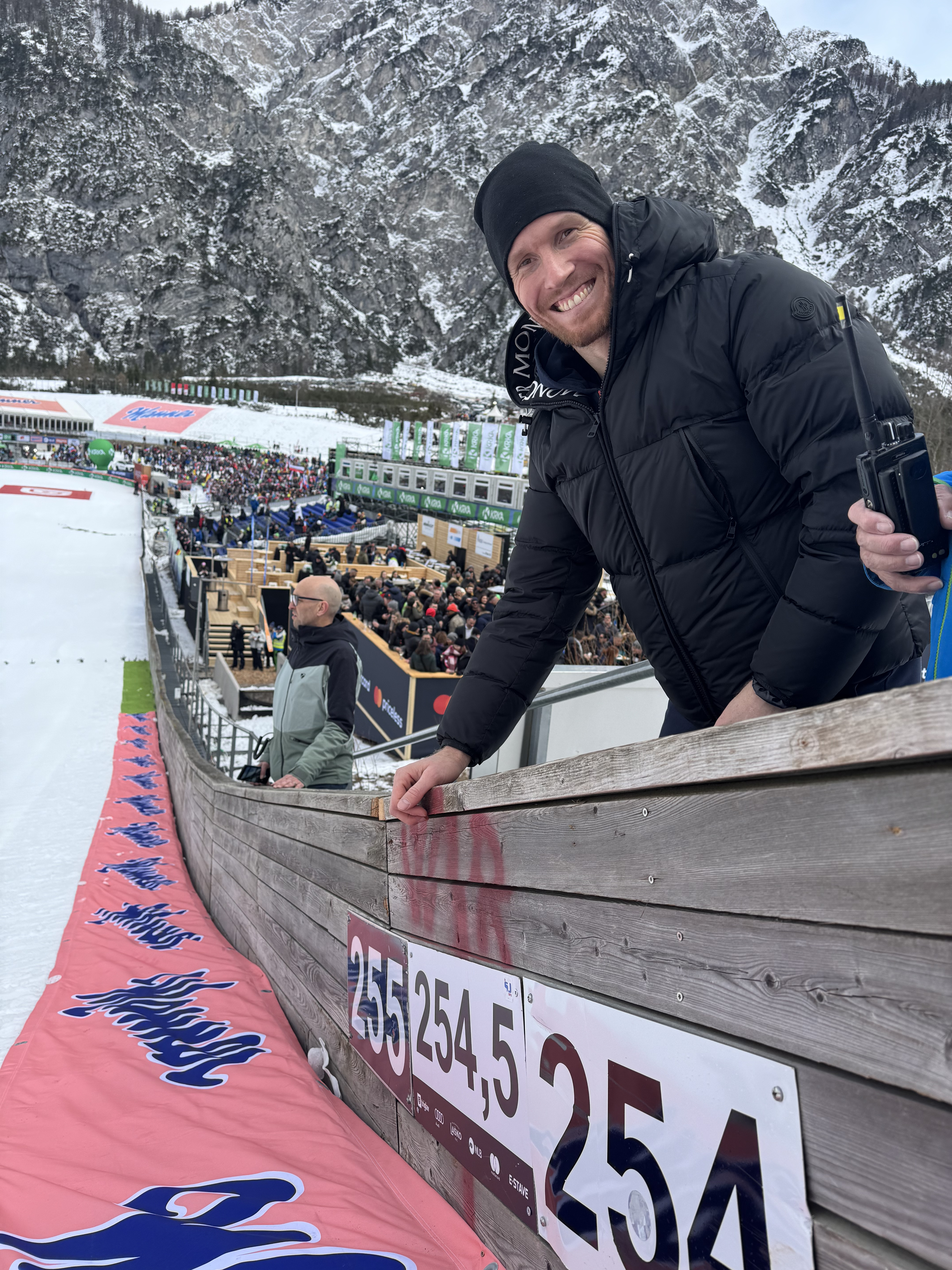 Slovenia’s national team captain, Tine Urnaut, took on a special challenge in the ski flying Mecca of Planica, Slovenia. He symbolically served the ball all the way to the ski jumping world record of 254.5 metres held by local icon Domen Prevc – and he was successful!
